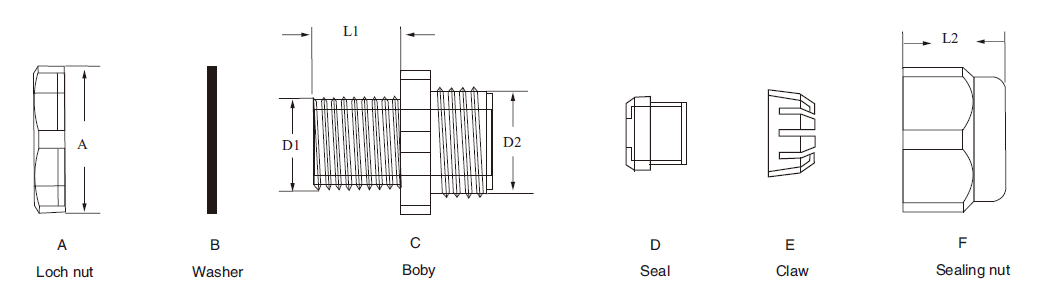 البند لا. مدخل ملولب D1 D2 L1 L2 أ ثقب تثبيت لوحة نطاق الكابل